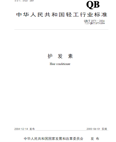護發(fā)素 QB/T 1975質(zhì)檢報告標準下載,請點擊下載